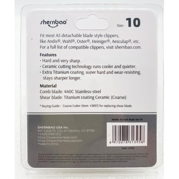 Ceramic blade set for Andis detachable blade clippers. Used for close clipping of the face and stomach and for sanitary preparation.