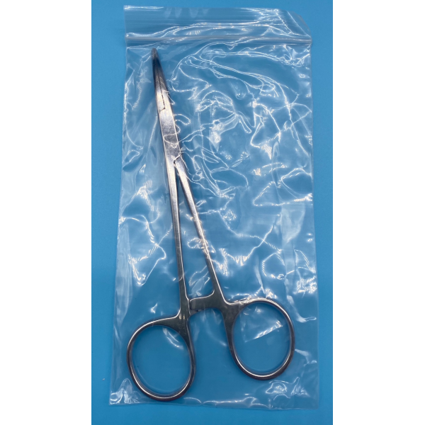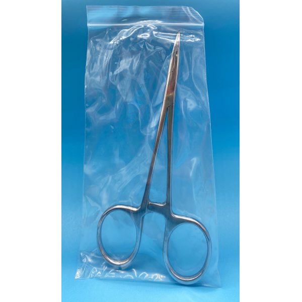 Cod#34100 Español: Tijera curva prenza hemostatica. 5.75 Pulgadas (15cm) Pulg HT-02 %. Curved scissors hemostatic clamp. 5.75 Inches (15cm) In HT-02 %.