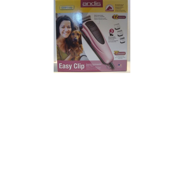 ENGLISH: Andi. 75% more powerful for the perfect clip every time. Interchangeable blades for clipping and trimming. Quick release button for easy-to-use blades. Step-by-step DVD with complete dog grooming instructions. Patent pending Safeguard combs designed with rounded tips for safer grooming. Ideal for medium to small breeds. Comfortable design and quiet running motor. Kit Includes: Powerful clipper. 3 interchangeable blades: sizes 10,7FC, and 4FC. 4 Safeguard combs: 1/4", 1/2", 3/4", 1" (for use with size 10 blade). Step-by-step DVD. Stainless steel shears. Clipper oil. Durable storage case.