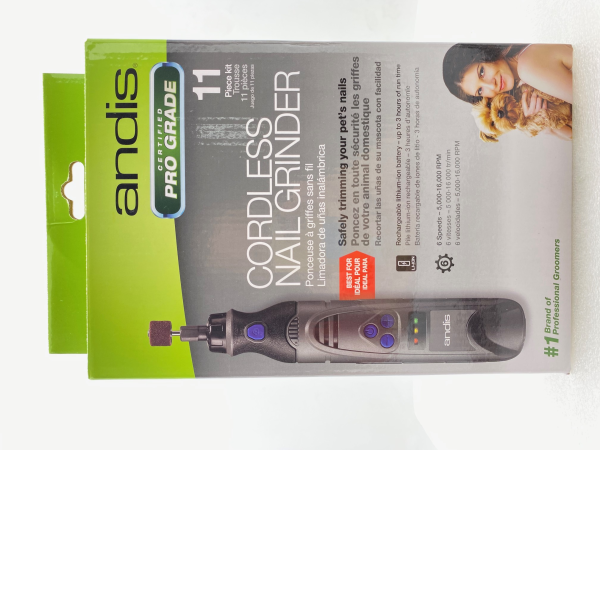 A nail grinder is the easy and stress-free way to give a pet pedicure. Using a gentle U-shape motion, star by filing back to front, moving with the direction of the grinder rotation. Change the direction from left to right, rounding the corners in a C-motion.