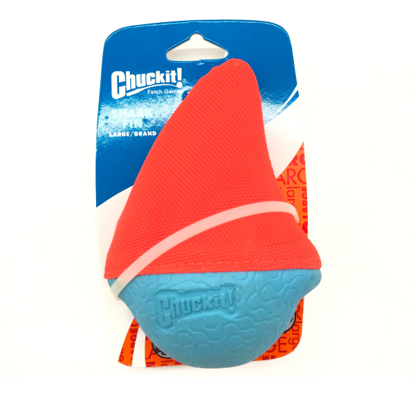 Launch it and watch it float! The Chuckit! Amphibious Shark Fin is one tough toy that your dog is going to love chasing. The unique self-righting technology keeps the Amphibious Shark Fin always in the fin-up position and makes it easy to spot on land or in the water. Designed for exceptional visibility and performance for hours of fun. Made of a soft but rugged textured material thats easy on a dogs mouth. Easy to clean after a day of fun filled play. The perfect complement to your Chuckit! Launcher. This high floating toy is perfect for water play. Extremely visible with bright colors. Ideal for the beach, lake, or pool. For supervised play only. Know your dog and choose the appropriate size and type of toy to prevent choking or other harm. Inspect this toy regularly; if the toy is damaged or if parts become separated, remove toy and parts as injury may result. Not a childs toy. Ships in assorted colors.