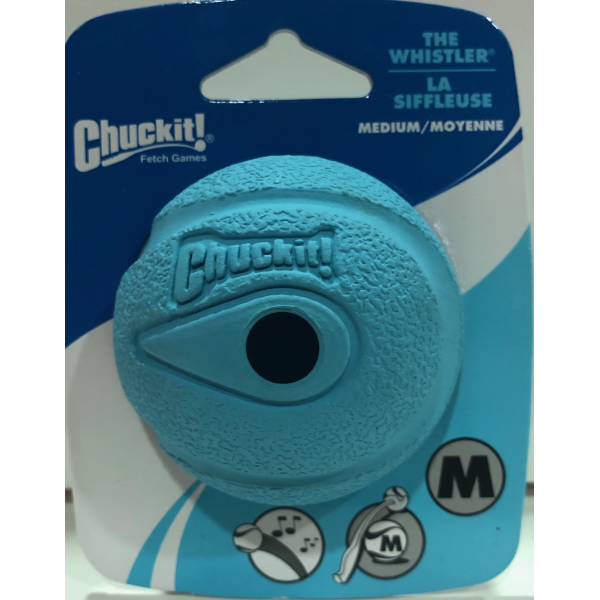 Ready, set, fetch! The Chuckit!® Whistler® keeps the game of fetch interesting and challenging for your dog. Four holes in this high-bouncing rubber ball produce a whistle as it soars through the air to keep your dog interested and focused. Gripable rubber ball is made just the right size to use with your Chuckit! Launcher. These high-bouncing balls are available in sizes small, medium and large, with one and two-pack options.
