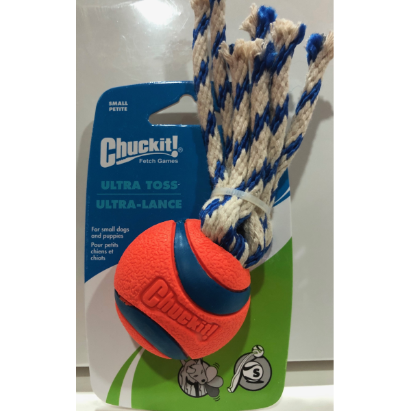 Designed for the most demanding use, Chuckit!® Ultra Toss® is no ordinary ball. Simply put, this is the best ball for games of fetch or tugging. Developed to have high bounce, high buoyancy, high visibility, and high durability. The Chuckit! Ultra Toss promises to outplay the ordinary. Made from natural rubber so it is easy to clean after a fun-filled game of fetch. The natural cotton rope makes for easy handling and gripping. Bright color gives increased visibility and helps to prevent the ball from getting lost. Compatible with Chuckit! Launchers.