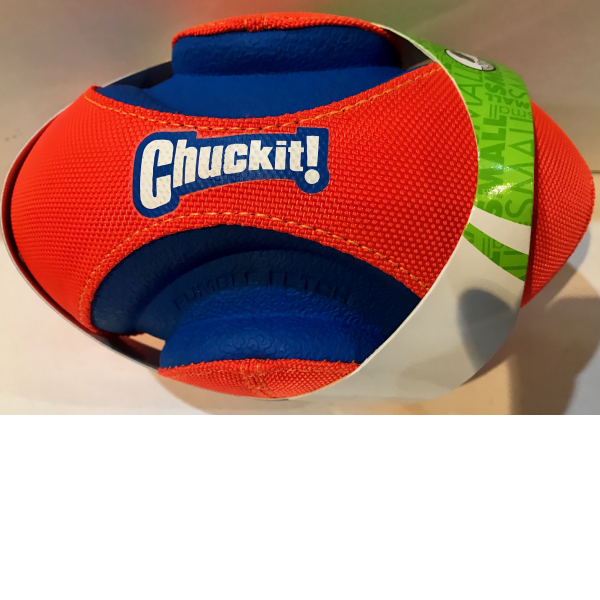 The Chuckit!® Fumble Fetch® is a random bound football shaped toy made for the game of fetch. The inverted variable welt design makes the Fumble Fetch easy for your dog to pick up. Pass or punt with an erratic random bounce for added excitement and that dont you know where the ball will land. A great toy for hours of interactive play with your dog. The bright color gives increased visibility and helps prevent the ball from getting lost. Made of rubber, EVA foam and polyester for a puncture resistant ball that will not deflate. Product note: For supervised play only.Inspect this toy regularly; if the toy is damaged or if parts become separated, remove toy and parts as injury may result. Not a childs to.
