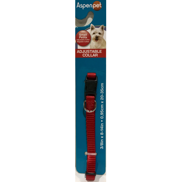 COLLAR NYLON AJUSTABLE SMALL 3/8" X 8-14" O 0.95 CM X 20.32-35.5 CM ROJO