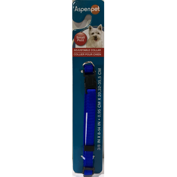 COLLAR NYLON AJUSTABLE SMALL 3/8" X 8-14" O 0.95 CM X 20.32-35.5 CM AZUL