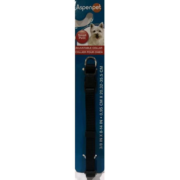 COLLAR NYLON AJUSTABLE SMALL 3/8" X 8-14" O 0.95 CM X 20.32-35.5 CM NEGRO