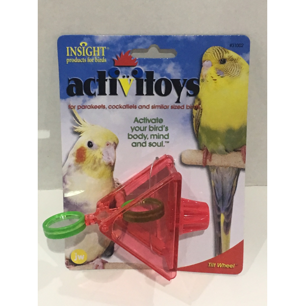 JW Tilt Wheel bird toy is designed with dual rotating double sided mirrors to provide your pet bird with hours of fun. This physically and intellectually stimulating interactive toy is made of translucent red plastic and screws onto vertical and horizontal barred cages. This bird toy is ideal for parakeets and cockatiels.