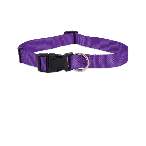 Petmate® Standard Adjustable Dog Collars are quality constructed using durable webbing. Choose an adjustable collar for a custom fit on your dog. Your pet will look fabulous and feel great in these basic dog collars featuring fray-resistant poly nylon in a variety of stylish colors. In addition, this sturdy collar is comfortable for your pet and features tough plastic buckles with built-in adjustment slides, heavy duty stitching, and metal d-rings.