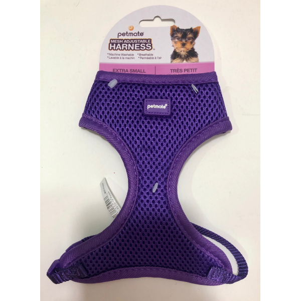 The Petmate® Adjustable Standard Core Mesh Harness for dogs is a super-stylish, ultra-comfortable harness. In addition to being comfy, stylish and featuring added safety measures for your furry friend, this body harness alleviates pulling and strain and helps to distribute your dogs body weight evenly to provide a better walking experience for both you and your pet. Lightly padded material with breathable mesh provides the utmost comfort for your beloved pet. Includes an adjustable slide in the chest area for a snug and custom fit. This harness also includes a heavy-duty plastic buckle. The nylon strap has a metal D-ring for attaching a leash.