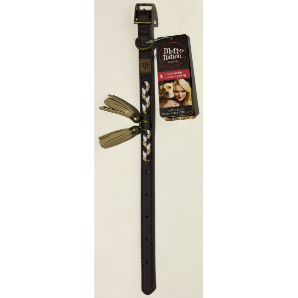 The MuttNation Faux Leather Tassel collar with woven braid taps into the country chic feel and rock & roll style that is interwoven throughout the MuttNation brand. Each custom fit collar allows for just the right fit for your dogs neck size. Suitable for small, medium and large dogs. Each collar is adorned by a MuttNation logo patch. Every purchase will help fund mutt rescue and adoption programs of the MuttNation Foundation™.