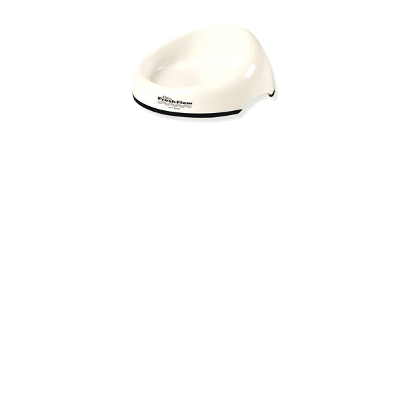 ESPAÑO: Comedero de color blanco. Contenido: 2.1 tazas.El plato por su diseño es único con bordes contorneados, pies antideslizantes de caucho y un conveniente recorte lateral, su mascota puede comer con estilo.