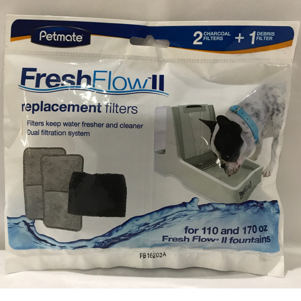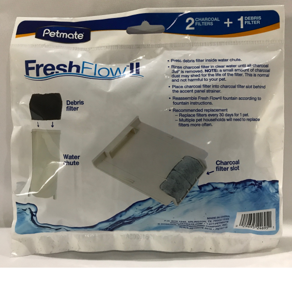 Para mantener la salud y el bienestar de su mascota, revise regularmente las piezas y accesorios de los sistemas de alimentación y riego de su perro o gato para reemplazarlo. Este filtro de reemplazo de 3 filtos, dos filtors de carbón y uno de escombros, para el uso en los sistemas Waterer Replendish Waterer o Mason Style Waterer, para cascadas FreshflowII, 110 y 170 onzas . Antes de usar, asegúrese de retirar el revestimiento de plástico exterior del filtro y enjuagarlo con agua fría.