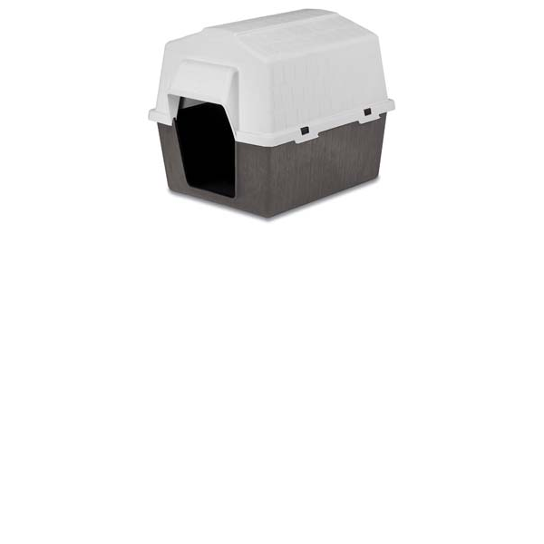 Este albergue de animales, en forma de granero con ventilación de aire trasero. Disponible en 2 tamaños para adaptarse a los animales domésticos de 22 pulgadas (55.88 cm) a 28 pulgadas (71. cm) de altura. Color: Techo Blanco y Base Negra.