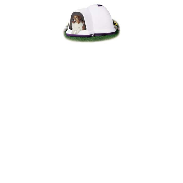 This top-of-the-line igloo shaped doghouse has an extended offset doorway to improve rain resistance and wind protection. Roof ventilation. Heavy duty construction. With Microban antimicrobial.