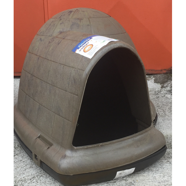 This top-of-the-line igloo shaped doghouse has an extended offset doorway to improve rain resistance and wind protection. Roof ventilation. Heavy duty construction. With Microban antimicrobial.