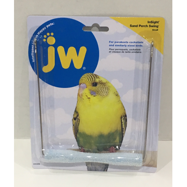 JW Sand Perch Swing is specially designed for your pet birds well-being. Your feathered friend is sure to get a great workout with this perch swing as he exercises the muscles in his feet. Rough texture provides an excellent surface for normal wear of your pet birds nails. This swing easily attaches to cage ceiling wire. Small is sized right for parakeets and similar sized birds. Regular is sized right for cockatiels and similar sized birds