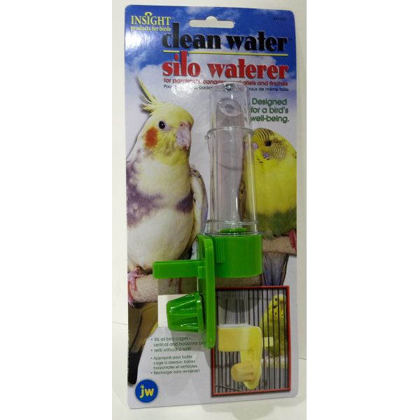 JW Clean Water Silo Waterer is specially designed for your birds well-being. Clean Water Silo Bird Waterer with its no-spill valve means no more water spills when removing waterer for filling! Plus, This waterer is designed to fit all bird cages with vertical and horizontal bars.