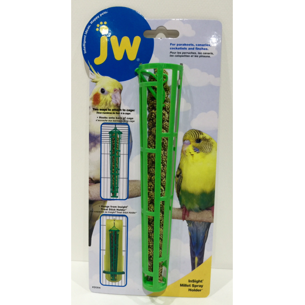 JW Millet Spray Holder makes offering millet to your pet bird effortless. Designed for your feathered friends well-being, the plastic holder attaches easily to the cage.