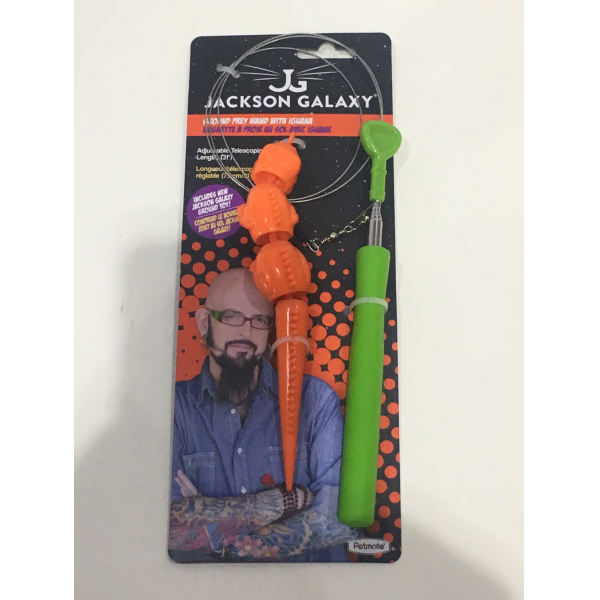 Let the hunt begin! Engage your frisky feline with some prowling and pouncing fun. The Jackson Galaxy Ground Prey Wand with Iguana features a telescoping wand (up to 32") that allows cat families to direct interactive play. Wire movement resembles creatures crawling to activate your cats prey drive. The iguanas ball and socket joints create realistic movement that mimics ground prey such as mice, squirrels, and bugs.