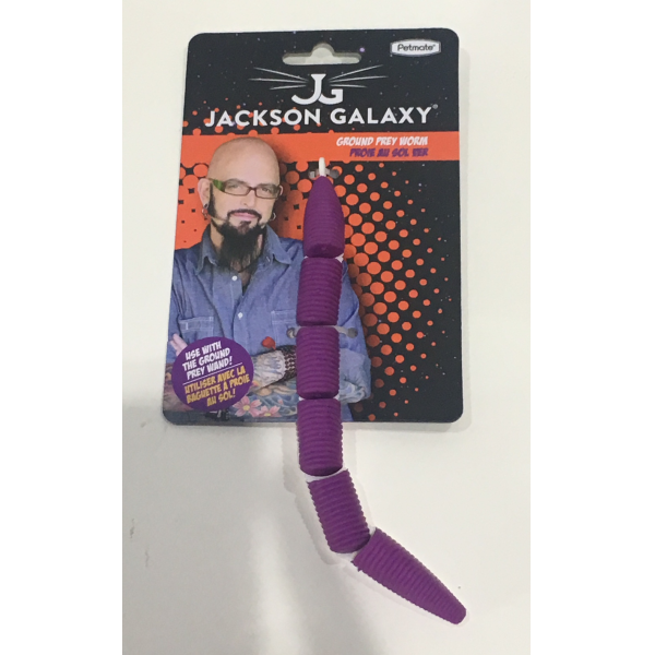 Does your cat stalk bugs, lizards and other critters that scurry about? Then the Jackson Galaxy Ground Prey Worm might be the perfect fit for your cat. The Ground Prey Worm accompanies the Jackson Galaxy Ground Prey Wand to provide your cat with hours of interactive playtime! Ball and socket joints allow full 180 side-to-side realistic movement that mimicks actual living ground prey. The smooth bottom reduces friction for easy movement along any surface. Soft TPR top provides a satisfying catch for any cat once the hunt is over. Available in assorted colors.