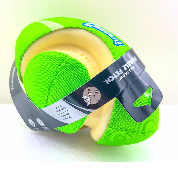 The Chuckit!® Fumble Fetch® is a random bound football shaped toy made for the game of fetch. The inverted variable welt design makes the Fumble Fetch easy for your dog to pick up. Pass or punt with an erratic random bounce for added excitement and that dont you know where the ball will land. A great toy for hours of interactive play with your dog. The bright color gives increased visibility and helps prevent the ball from getting lost. Made of rubber, EVA foam and polyester for a puncture resistant ball that will not deflate. Product note: For supervised play only.Inspect this toy regularly; if the toy is damaged or if parts become separated, remove toy and parts as injury may result. Not a childs to.