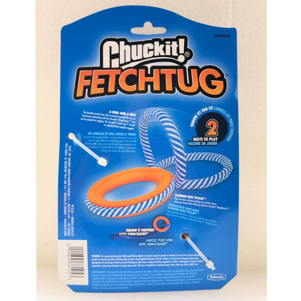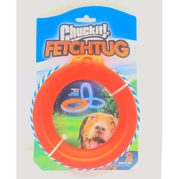 A ring and a tug! The durable nested rope stores securely around the ring for throwing or launching with the Chuckit! Ring Chaser but can be opened for tugging. The Chuckit! Fetch Tug is built to withstand the toughest tuggers.