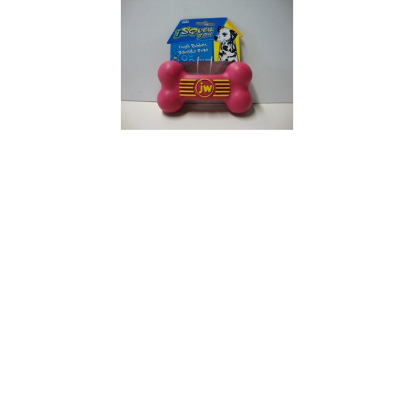 ENGLISH: isqueak bone. Tough rubber squeaky bone. As with any pet toy, always supervise your pet while playing. Remove toy it damaged or if parts become separated, as injury could result.