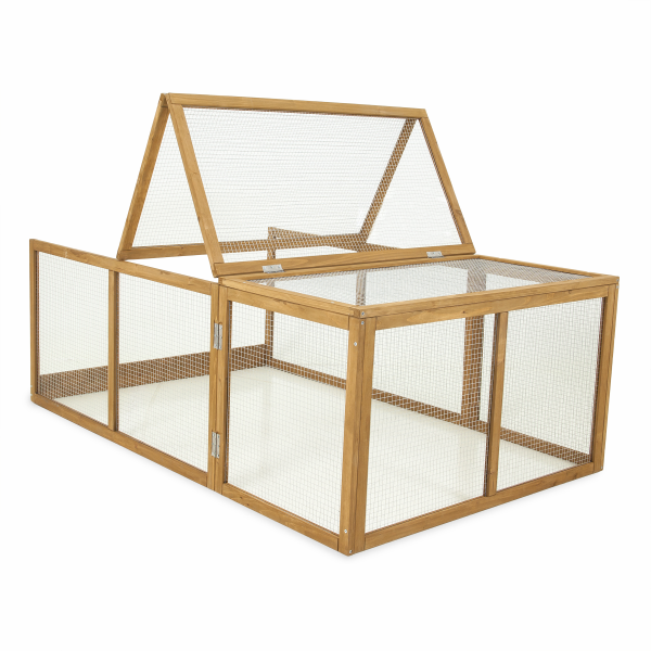 El Aspen Pet Chicken Run Fort ofrece espacio adicional para que las gallinas disfruten realizando sus comportamientos habituales. Dando más espacio a las gallinas disminuye comportamientos negativos coo el picoteo y el desplume. Este agregado encaja correctamente con el gallinero 443104, no incluido. El agregado es de gran tamaño para maximizar la capacidad y viene con una puerta de acceso fácil plegado para mayor comodidad.