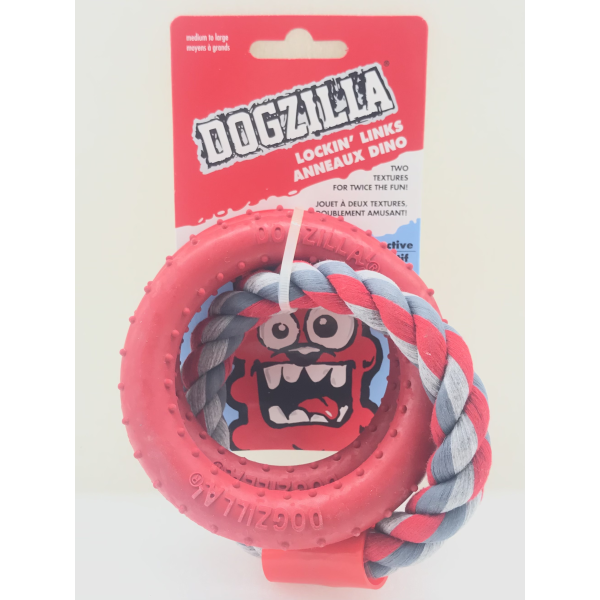 Juguete Dogzilla en forma de tres aros para perros medianos a grandes.