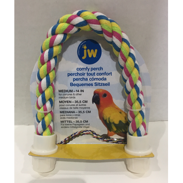 Keep your pet bird comfortable and stress-free with the JW Comfy Perch Cross. The Comfy Perch Cross works wonders for helping to relieve cage stress and boredom. Twist and bend the Comfy Perch Cross into any creative shape you want! Your pet bird will love exercising with this perch. It will hold its shape without the danger of wires or stiffeners being exposed, so your pet bird will be comfortable all day.