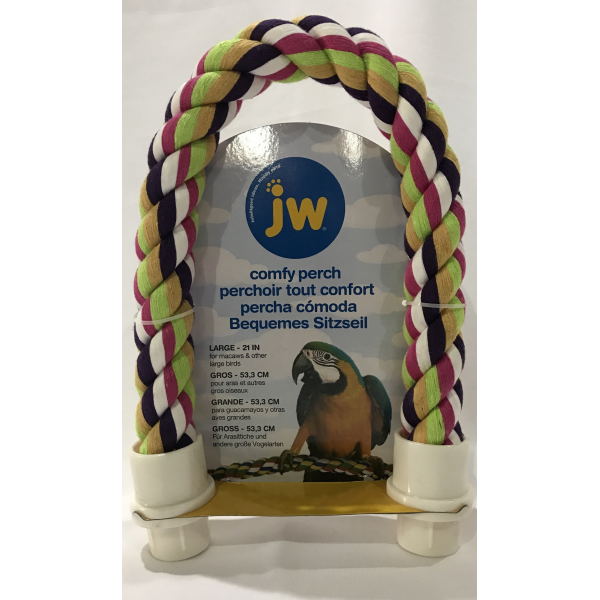 Keep your pet bird comfortable and stress-free with the JW Comfy Perch Cross. The Comfy Perch Cross works wonders for helping to relieve cage stress and boredom. Twist and bend the Comfy Perch Cross into any creative shape you want! Your pet bird will love exercising with this perch. It will hold its shape without the danger of wires or stiffeners being exposed, so your pet bird will be comfortable all day.