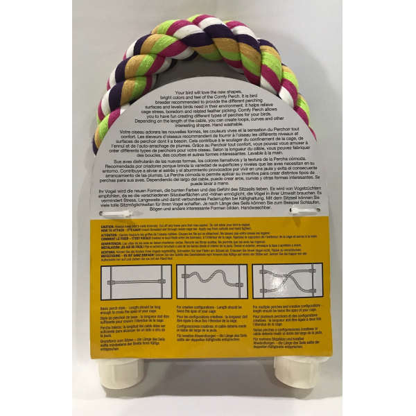 Mantenga su pájaro de mascota cómodo y sin estrés con el JW Comfy Perch Cross. La Comfy Perch Cross trabaja maravillas para ayudar a aliviar el estrés de la jaula y el aburrimiento. Gire y doble la Comfy Perch Cross en cualquier forma creativa que desee! Su ave de mascotas le encanta hacer ejercicio con esta perca. Mantendrá su forma sin el peligro de los alambres o de los refuerzos que son expuestos, así que su pájaro del animal doméstico será cómodo todo el día.