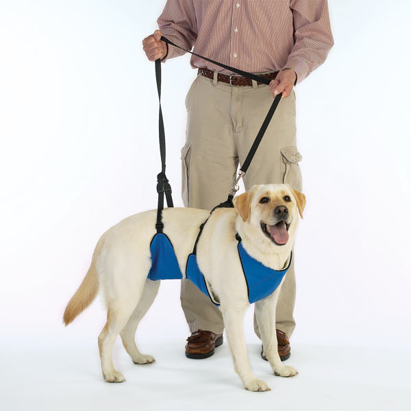 Lift up on carrying strap to support dog’s hindquarters as it stands and walks.