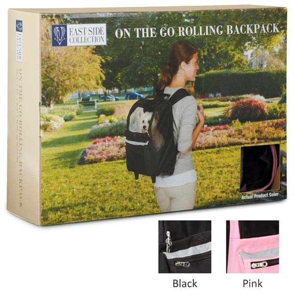 Avid travelers love the convenience and quality of our East Side Collection On-The-Go Pet Rolling Backpacks. Durable rolling backpack carrier is made of luggage-quality fabric and can be worn as a backpack or rolled along like luggage with the telescoping handle.