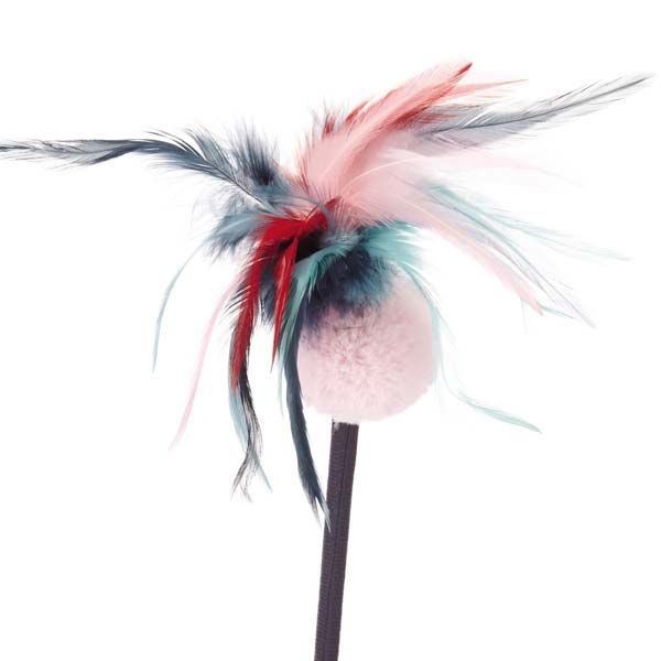 Feather-topped plush ball on a spring has a soundchip that will chirp when batted