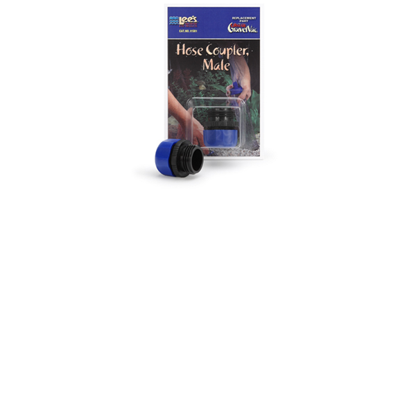 ENGLISH: Ultimate GraveVac Hose Coupler, Male. The Ultimate Hose Couplers are replacement parts for the Ultimate Gravel Vac Kit. The male fitting is used to connect 1/2" inside-diameter tubing.