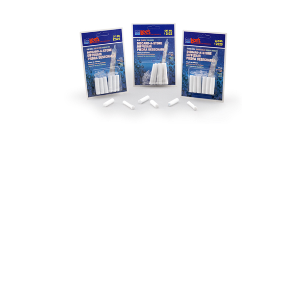 ENGLISH Discard-A-Stones are fine disposable air diffusers with reusable inserts for attaching airline. They are an excellent aeration device for use in under gravel filters, corner filters or just as decorations. Contains 6 disposable air diffusers.
