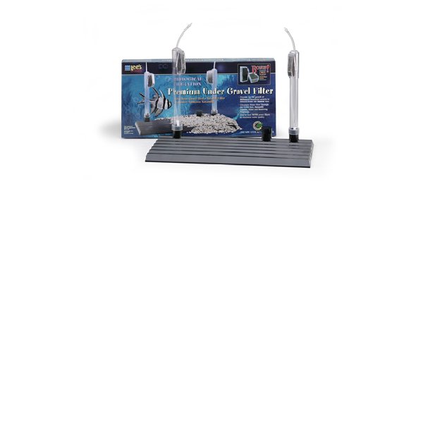 This biological filter has a multi-level plate design. The larger plate sizes reduce the number of plates required. The added strength of the UGF plates makes this filter most preferred by saltwater aquarist. The molded gravel guards eliminate the possibility of gravel falling down the uplift tube. Includes Premium Carbon Cartridges, Slim Discard-A-Stones, telescoping ring for uplift tube height adjustment and Lees fish - saver elbow. Made of special quality plastic which resists splitting and cracking.