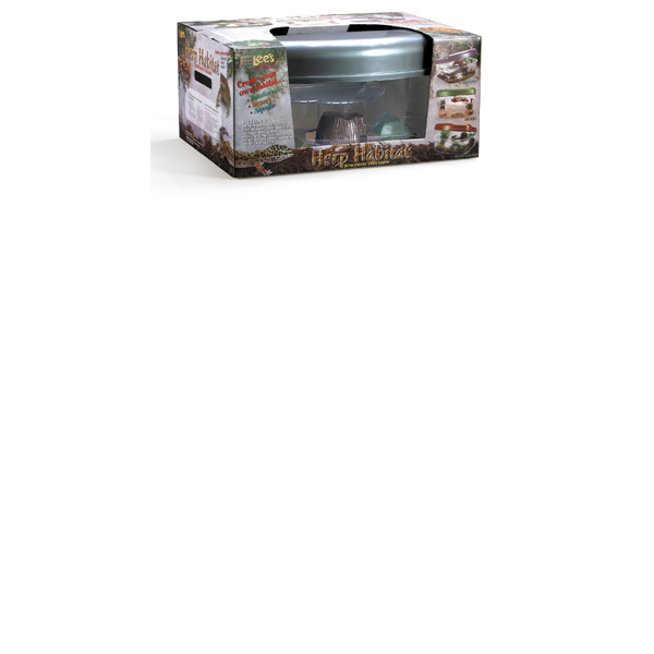 Proporciona una vivienda ideal para los gecos, pequeñas serpientes, lagartos y anfibios así como tarántulas, arácnidos y ranas venenosas.Incluye un tronco y dos platos en forma de hojas. Características especiales: incluyen un bloqueo de la cubierta fija de metal con pantalla para que entre el sol.Capacidad de agua: 2.5 Galon.