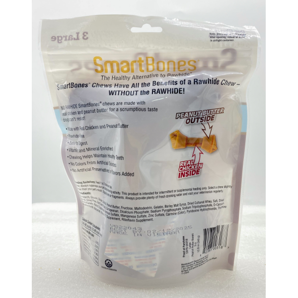 NO RAWHIDE Smart Bone Chews are with Real Chicken and peanut butter for a scrumptious taste dog cant resist!
