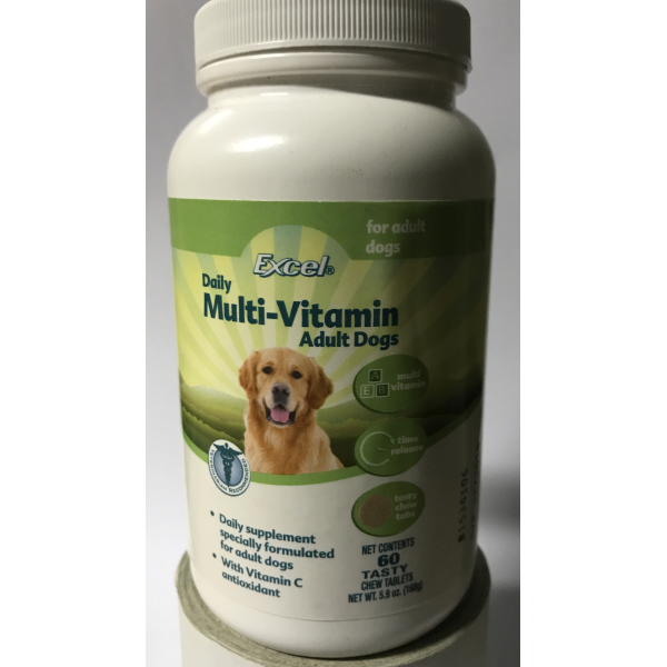 Excel multivitamin, specially formulated for adult dogs with Ester-C, recommended by veterinarians, provides essential vitamins and minerals required for adult dogs.