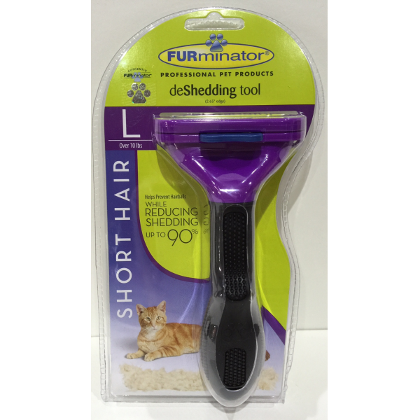 Stainless steel deShedding edge reaches deep beneath your cat’s short topcoat to gently remove undercoat and loose hair