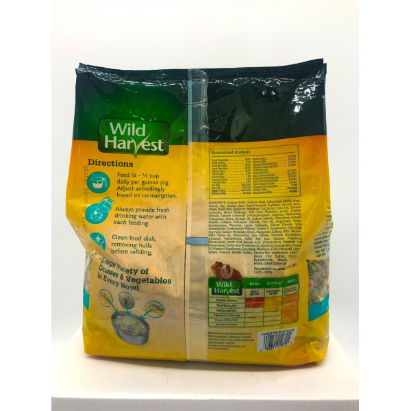 Wild Harvest Advanced Nutrition Guinea Pig provides premium nutrition for developing and maintaining good healt. Our scientists developed a unique formula containing a tantalizing array of high-fiber pellets and a delicius mix of healthy vegetables to provide your pet with premium diet. Whit this formula, theyll receive important fiber, protein, vitamins and minerals needed to support a strong, healthy body. Wild Harvest Advanced Nutrition Guinea Pig not only offers idela nutrition for your pet, but also a comprehensive range of ingredients. Varied diets are particulary important for guinea pigs in order to help replicate diets fount in their natural habitad and encourage natural foraging behavior. Foraging for food provides guinea pigs with important physical and mental stimulation, and it helps keep your pet healthy and happy!