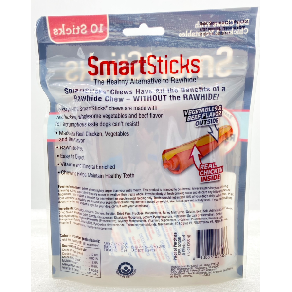 NO RAWHIDE Smart Sticks, chews are made with Real Chicken, wholesome vegetables and beef flavor for a scrumptious taste dog cant resist!