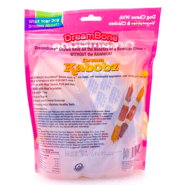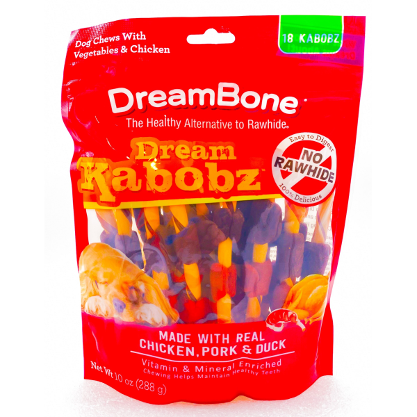 NO RAWHIDE Dream Bone Dream Kabobz are made with wholesome vegetables and real chicken, Pork and Duck for a scrumptious taste dogs cant resist!