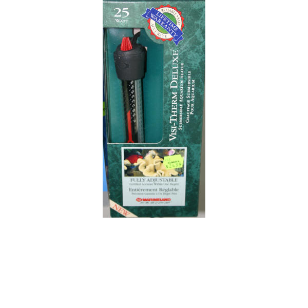 Visi-therm deluxe has it all: direct- set temperature control, compact double sealed durability... and certified accuracy to within one degree. With a simple click of the dial, you choose the ideal water temperature. and the custom Double-Suction Mounting Bracket features and adjustable three-position window that ensures easy-to-view temperature setting. 100 watts.