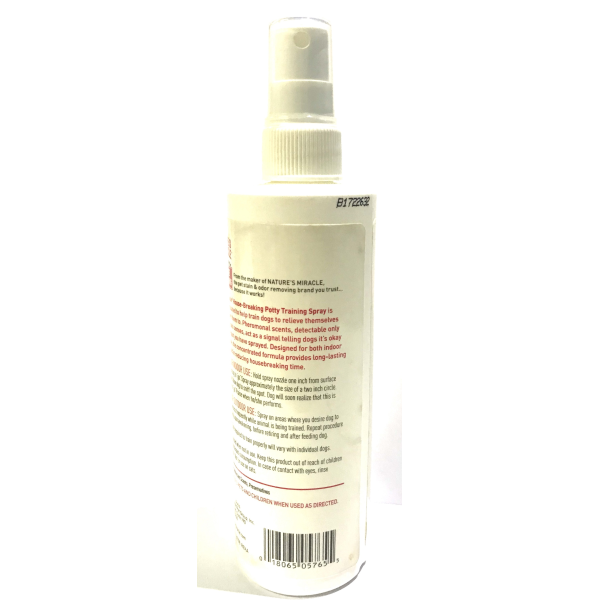House-Breaking Potty Training Spray is specially formulated to help train dogs to relieve themselves where you want them to. Phenomenal scents, detectable only by a dogs delicate senses, act as a signal telling dogs its okay to go on the spot you have sprayed. Designed for both indoor and outdoor use, the concentrated formula provides long-lasting effects which aid in reducing housebreaking time. Attractant pheromone scent reduces time required time to housebreak your dog! Encourages dogs to go where you want them to urinate. For indoor & outdoor training. Long-lasting concentrated formula.