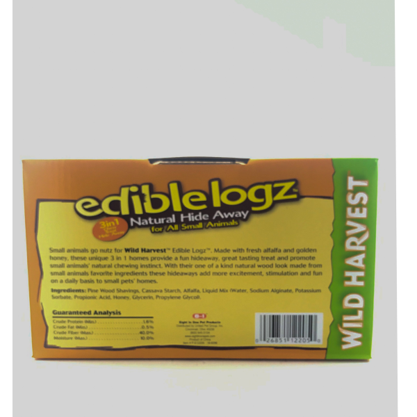 Small animals go nutz for Wild Harvest Edible Logz. Made with fresh alfalfa and golden honey, these unique 3 in 1 homes provide a fun hideaway, great tasting and promote small animals natural chewing instict. With their one of kind natural wook made from small animals favorite ingredients these hideaways add more excitement, stimulation and fun on a daily basis to small pets homes.