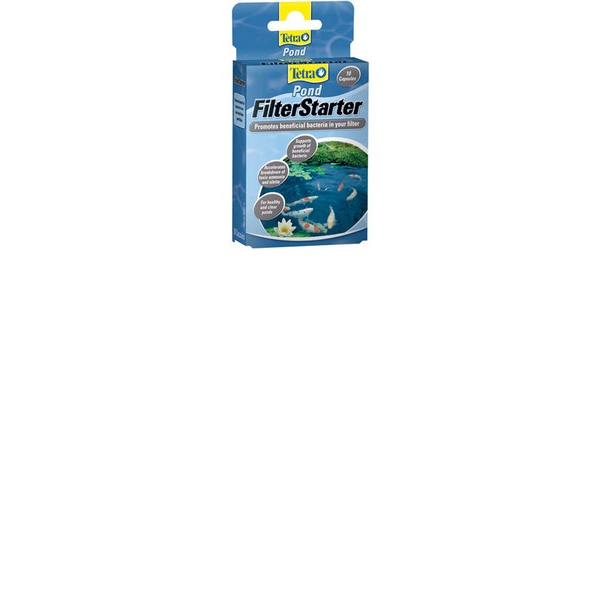 ENGLISH: Tetra Pond, FilterStarter. Promotes beneficial bacteria in your filter. Supports growth of beneficial bacteria, Accelerates breakdown of toxic ammonia and nitrite, for healthy and clear ponds. 10 capsules. Benefits: creates ideal conditions for establishing beneficial filter bacteria, accelerates the breakdown of toxic ammonia and nitrite, ideal for new ponds, after maintenance or spring cleaning, will not harm fish or plants. Directions: filter bacteria break down toxic ammonia and nitrite, and are therefore essential for a healthy pond. In new filters, or following maintenance, these bacteria may not be present. FilterStarter provides an environment in which these beneficial bacteria can establish themselves more quickly, thereby supporting a healthier environment and the safer stocking of fish. How to use and dosage. Break open the capsules and sprinkle powder directly over filter media. For maximum effect, leave the pump switched off for two hours following use. Initial dosing: use 3 capsules for new filters, following maintenance or when replacing media. Re-dose with 2 capsules every 4 weeks for long-term biological activity support. For outdoor ornamental ponds only.